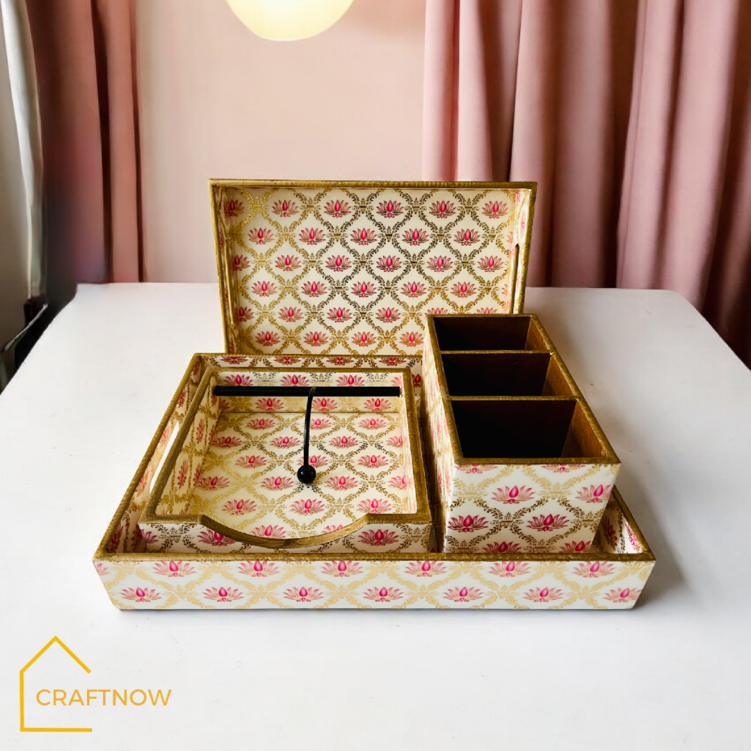 Elevate your serving game with our beautifully coordinated kitchen combo set—2 trays, a cutlery holder, and a napkin holder, because every detail deserves to shine.