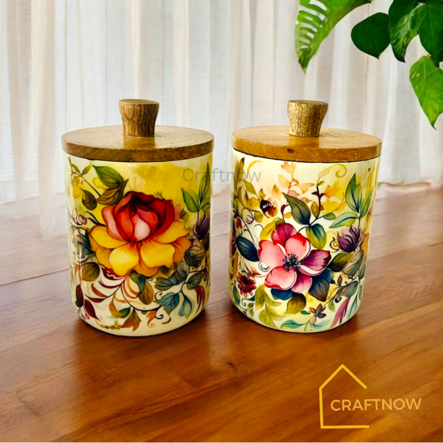 Premium Wooden Air Tight Jar Set of 2