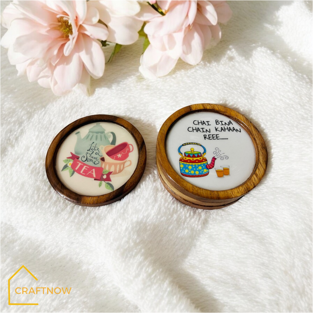 Wooden Coasters Set of 4 with Holder