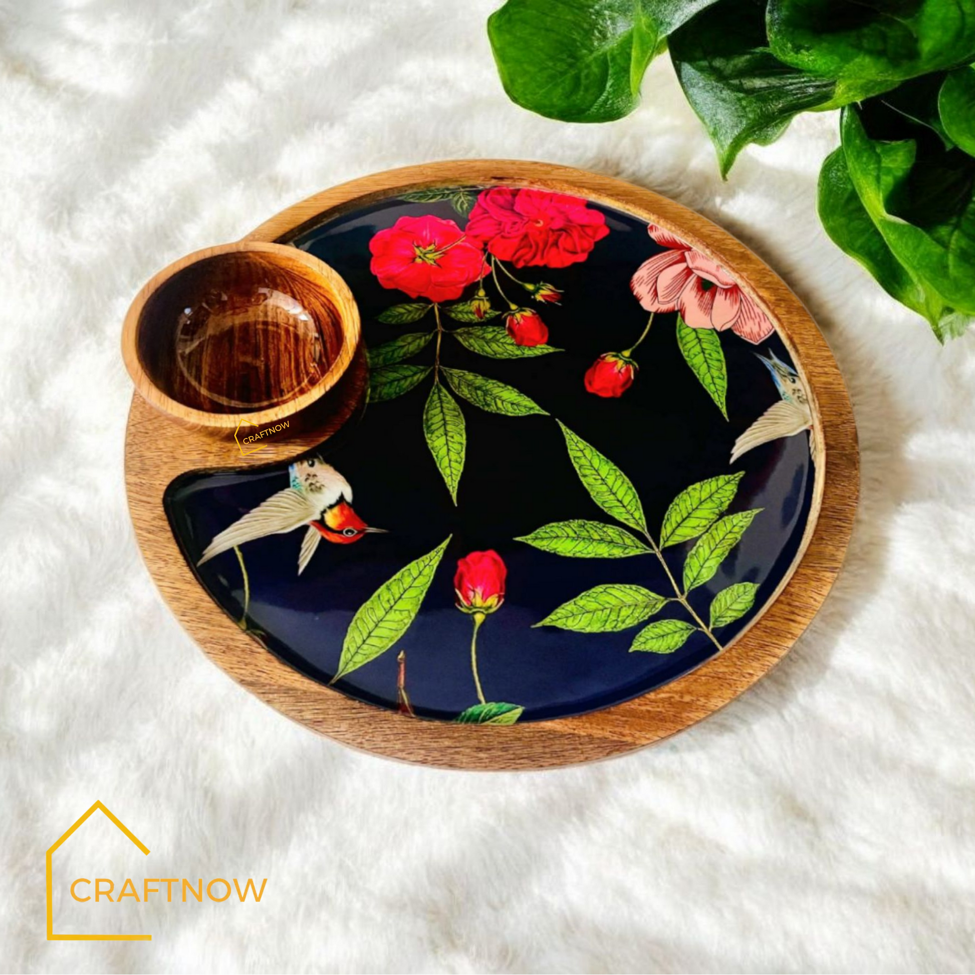 Wooden Serving Platter with a Bowl